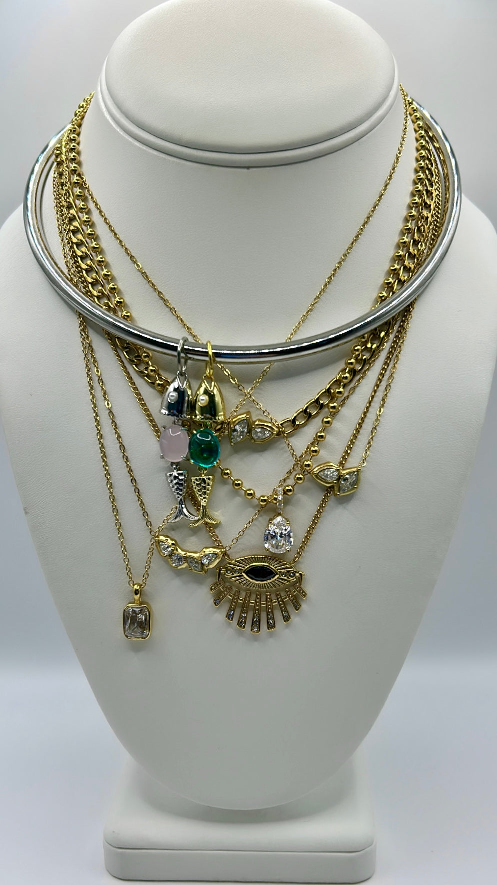 This two-tone silver fish choker is made to turn heads. Featuring a sculptural fish motif on a thick silver open-ended band, it plays with mixed metals for a bold, high-impact finish. A statement necklace that doesn't try too hard- it just hits.